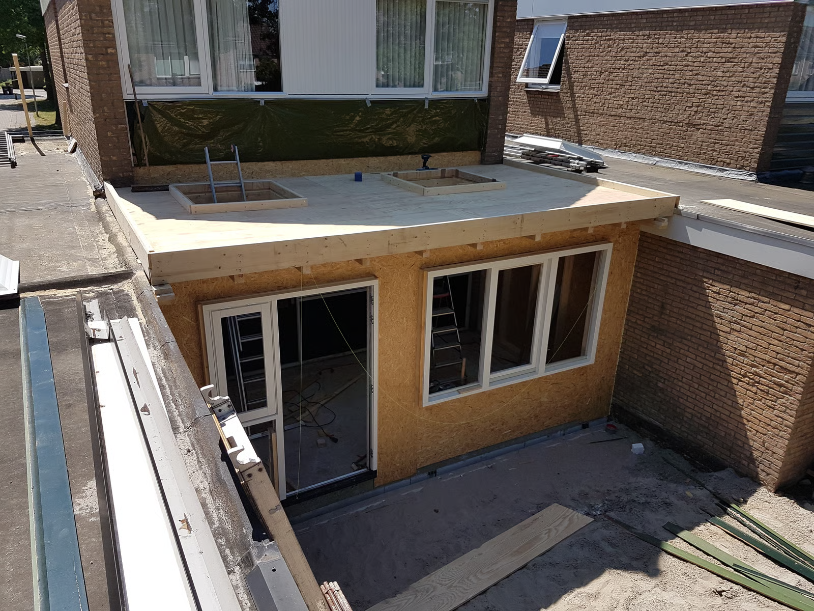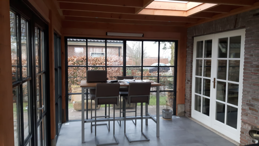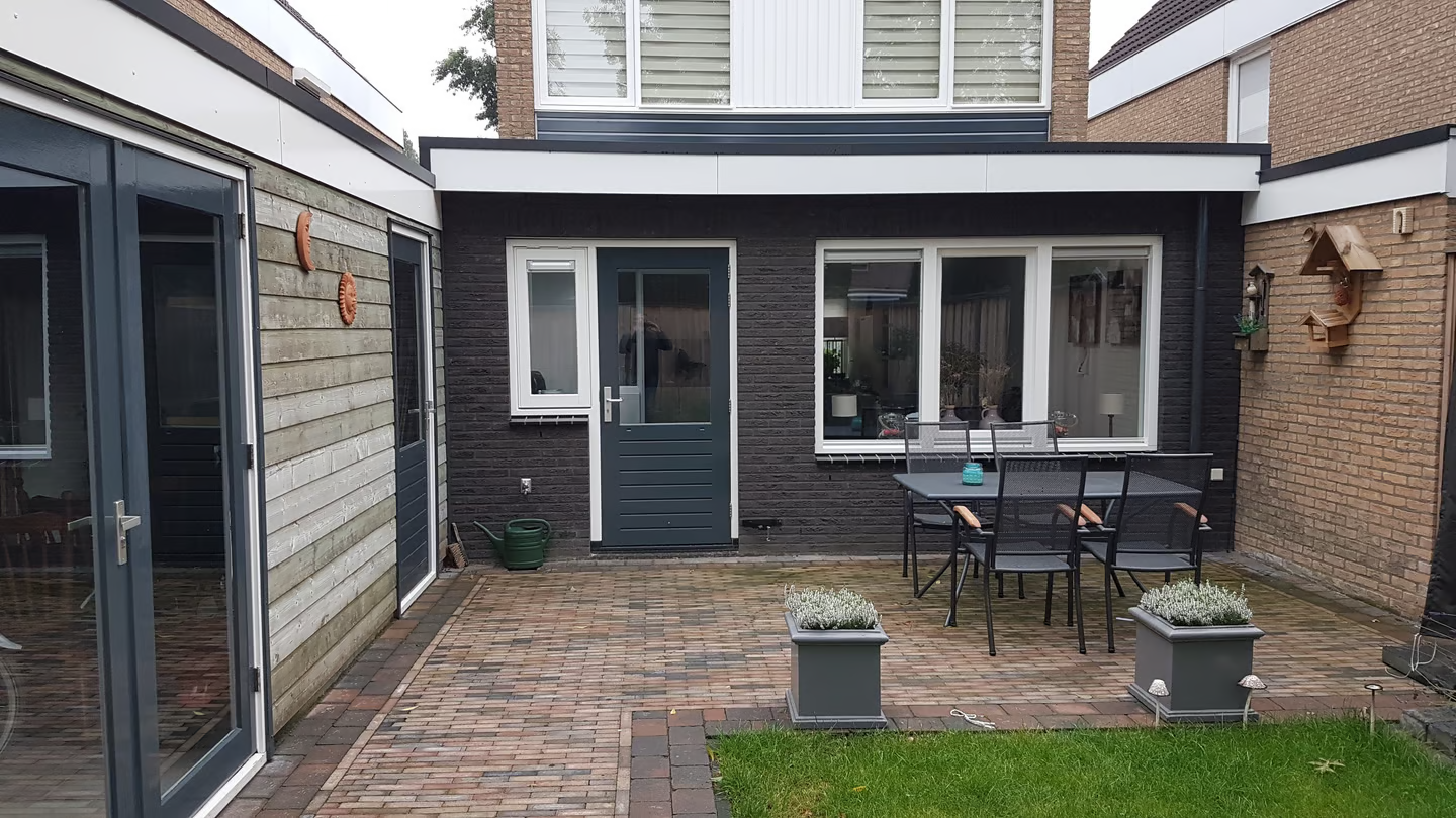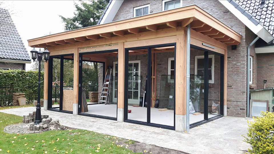 Aanbouw en Verbouw Aanbouw en Verbouw Overkapping met terrasdeuren en zijwanden verbouwing naar woonkeuken Plaatsen van een tussenwand met schuifdeuren in woonkamer Uitbreiding keuken naar woonkeuken met lichtkoepel Van overkapping naar berging